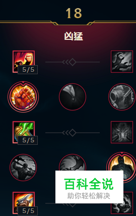 凶猛系:18点 点出狂怒(增加武器的攻击速度),新鲜血液(对英雄造成的第一次普攻打出高额伤害),吸血习性(提供一定的法术吸血和物理吸血,便于线上消耗),战斗专注(与敌方英雄战斗时可以提升伤害),粉碎重击(提供一定的百分比护甲穿透,使物理伤害破甲能力更高),战争热诚(普攻可以叠加攻击力层数,直到一定值)
