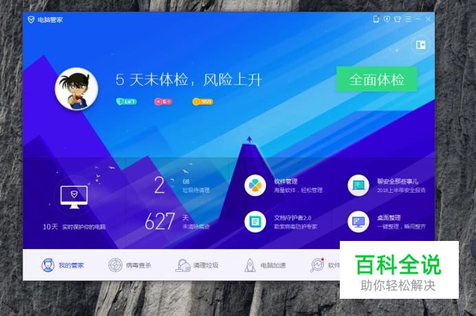 首先打开电脑管家会看到(工具箱)的功能,如图所示