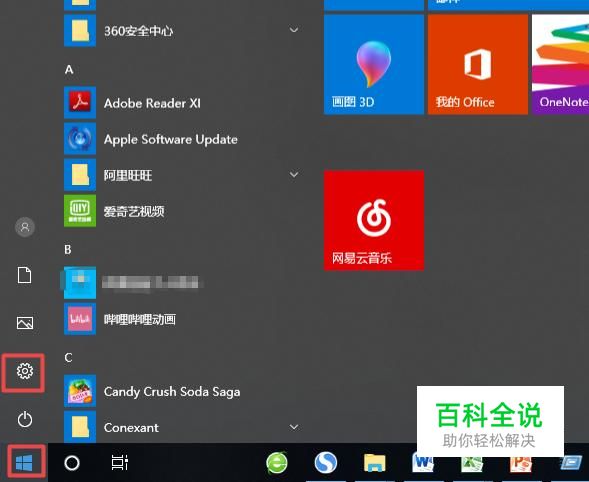 首先,我们点击电脑桌面左下角的微软按钮,弹出的界面,我们点击设置;