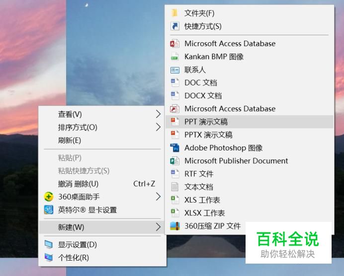我来给大家演示技巧,就先新建一个新的PPT文件吧。在桌面上右键单击,就可以找到。