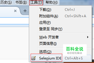【步骤一】打开Selenium IDE 打开火狐浏览器->工具->点击Selenium IDE,如下图