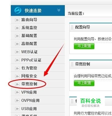 进入管理界面后,点击左侧功能列表中的【带宽控制】。