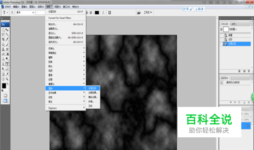 第二步,首先将前景色设置为黑色,背景色设置为白色;然后,再选择【滤镜】-【渲染】-【分层云彩】,如下图所示。