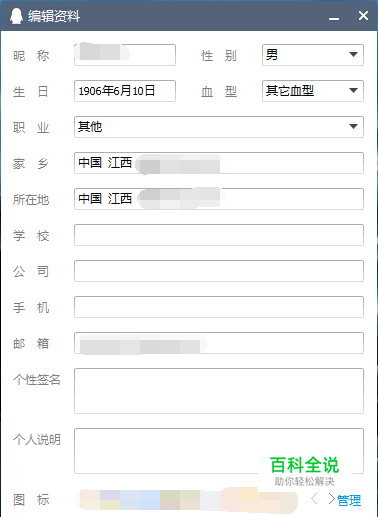 填写相关信息,填写完点击右下角的“保存”,这样就算编辑好自己的个人资料了。