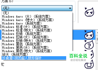 此时会弹出另外一个窗口,在弹出的的方案的下拉列表中找到自己想要删除的方案,点击它。如图点击的是关于鼠标指针的。
