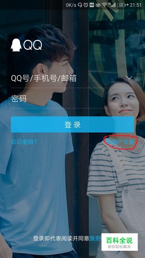 第一步,点击进入手机QQ,然后会看见右中下角有注册的字样。