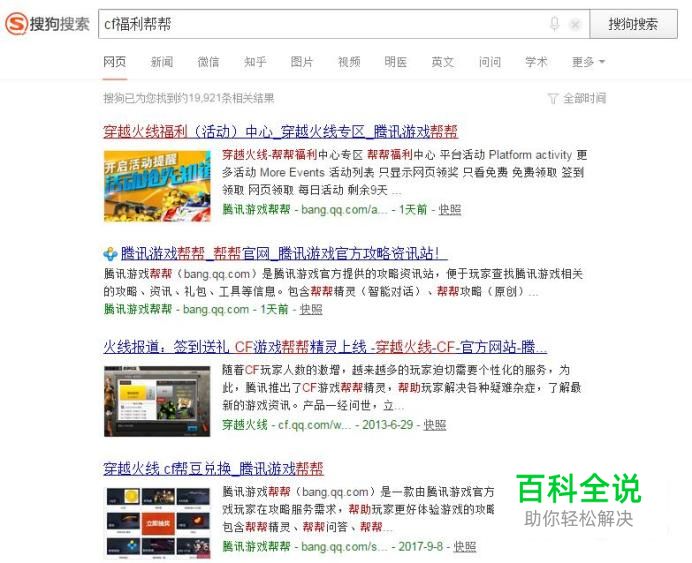 打开浏览器,输入“cf福利帮帮”,点击搜索。