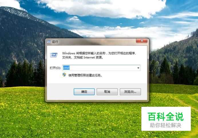 首先,我们使用快捷键win+R键,然后输入cmd。如图所示: