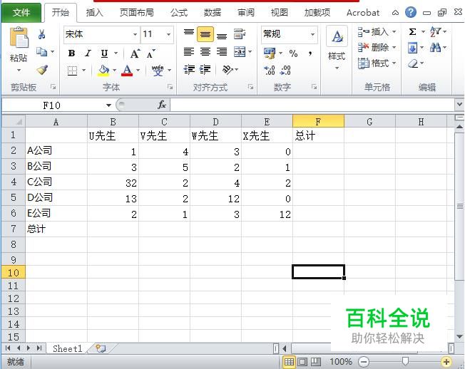 建立一个表格,输入部分信息作为求和的基础数据。表示四个人在对应公司投稿的数据表格。