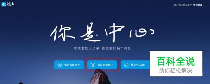 进入支付宝官网,点击我是商家选项。