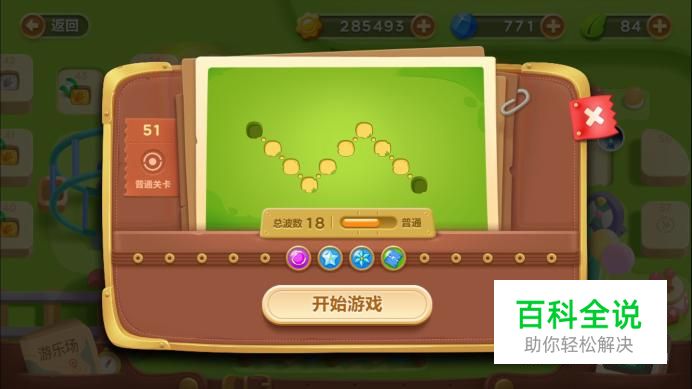 点击第51关,观察这一关的基本信息。这是一个普通关卡,地图路线特别的简单,也很短,提供的炮塔只有魔法球,冰冻花,冰冻星和冰锥炮塔,魔法球是攻击性炮塔,但是攻击力比较弱,而冰冻星,冰冻花和冰锥炮塔都是减速型炮塔,而这一关总共有18波怪物,难度可见还是很大的。于是小编果断的选择了好友助力,然后点击开始游戏。