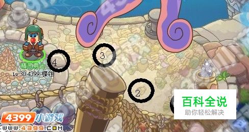 等到章鱼爪子卷起来时(两只爪子卷起来时不要动)立刻从1跑到2。1号盲点为一个黑色的东东,2号盲点为一个贝壳