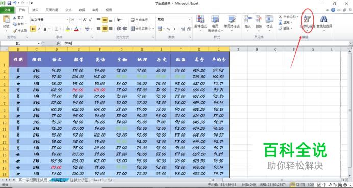可以看到性别一列中,男女已经分开排列。