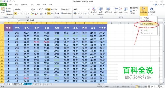 选择“自定义排序”。
