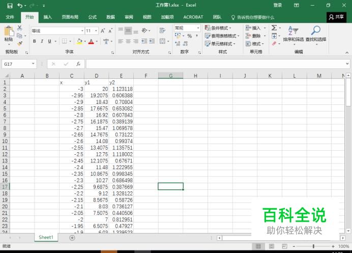 使用Excel打开数据表,如图所示,已存有一些数据。这些数据是为了说明整个制作回归方程曲线过程而生成的数据。在实际工作中,请严格按照工作要求收集数据。