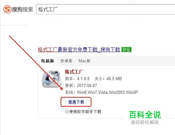 在“搜狗下载”中下载并安装“格式工厂”