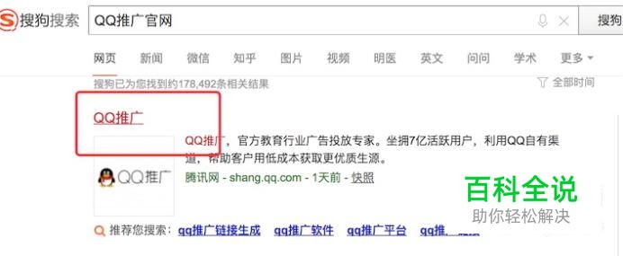 打开浏览器,打开搜狗搜索,输入:QQ推广官网,进行搜索