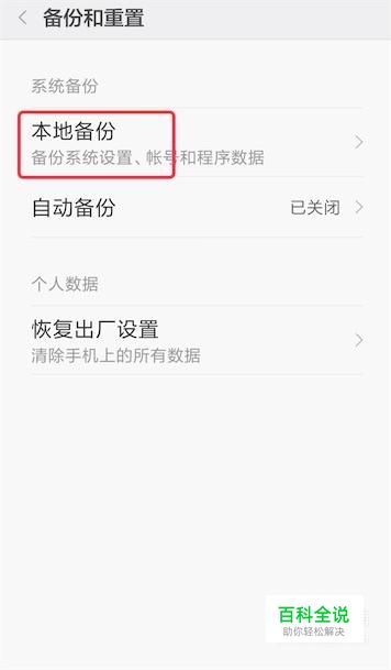 打开后,点击下面的‘备份和重置’