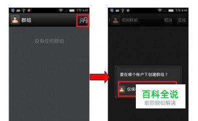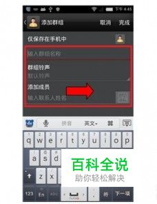 选择在哪个账户下创建群组、输入群组名称、设置群组铃声,编辑群组可添加联系人。