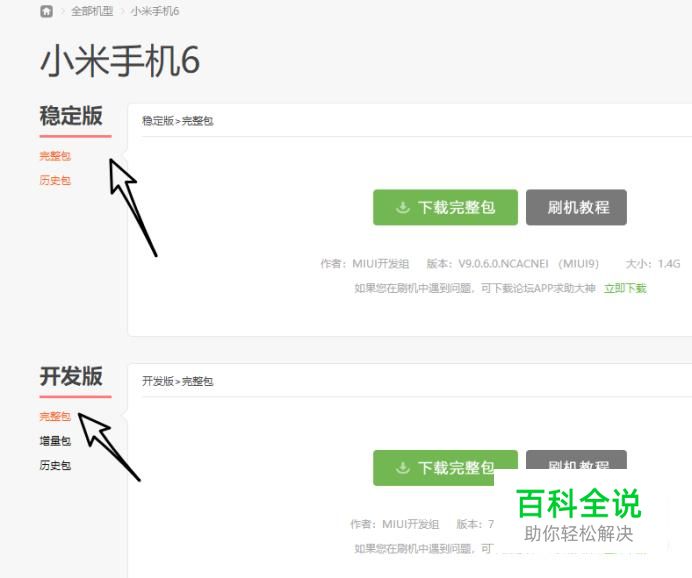 进入MIUI系统下载官网,根据手机型号下载对应的版本,这里以小米6的最新版本为例