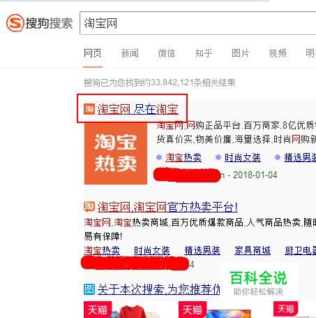 在搜狗搜索引擎中输入关键词“淘宝网”