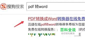 打开搜狗搜索,pdf转word, 点击打开结果页面,