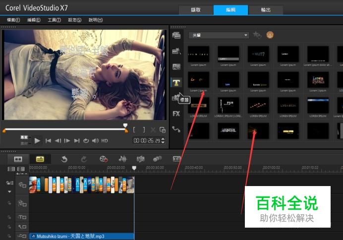 选择一个字幕效果,把其拉到标题轨,双击标题,即可修改成自己想要的文字。