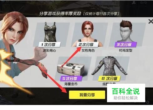 然后在分享界面可以清楚的看到女性角色获得的条件,点击下方的我要分享按钮分享游戏给朋友,因为这里的分享次数只计算每日的首次分享,因此需要在两天分别分享给朋友才能获得女性角色。