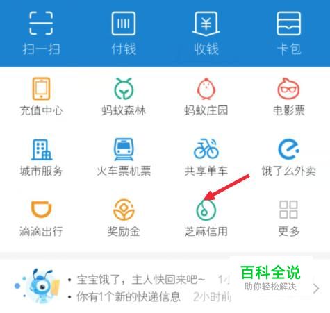 我们在支付宝APP首页上面找到“芝麻信用”这个图标点开一下,如果没有的话,在搜索框里面直接搜索就可以。