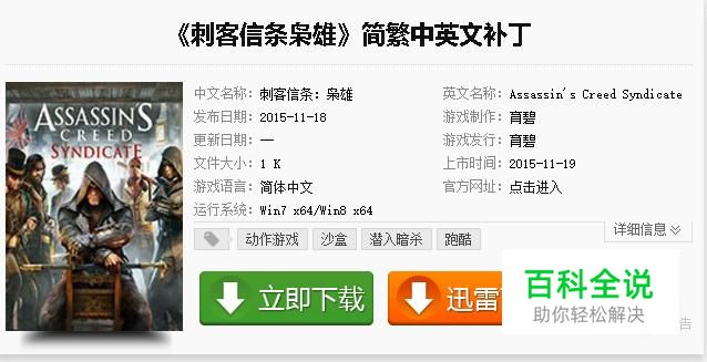 然后在站内搜索并找到刺客信条中文补丁。然后把补丁进行解压缩,再复制到游戏目录。有了这个补丁文件,我们才可以按如下方法来设置中文。