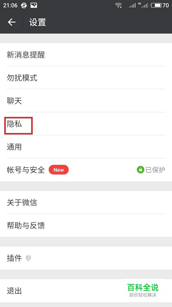 在设置内容里点击“隐私”选项。