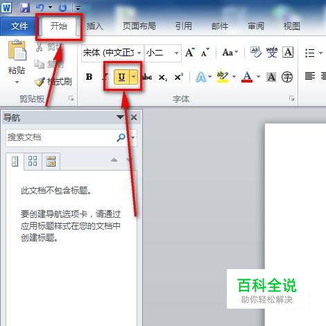 第一步,打开Word文档,然后点击开始菜单下的这个U图标,也可以使用快捷键Ctrl+U来触发这个图标哦。
