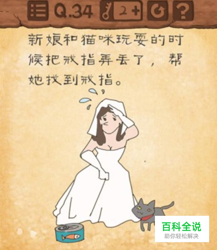 在这一关,我们要帮新娘子找丢失的戒指。戒指到底去哪了呢?