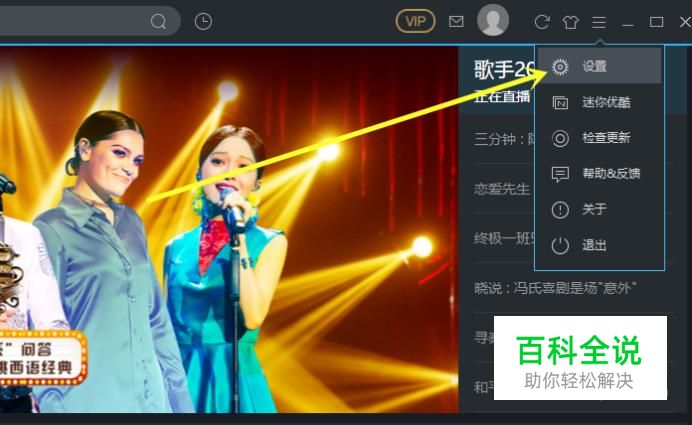 首先打开优酷软件,点击软件右上角的如图位置,然后点击 设置