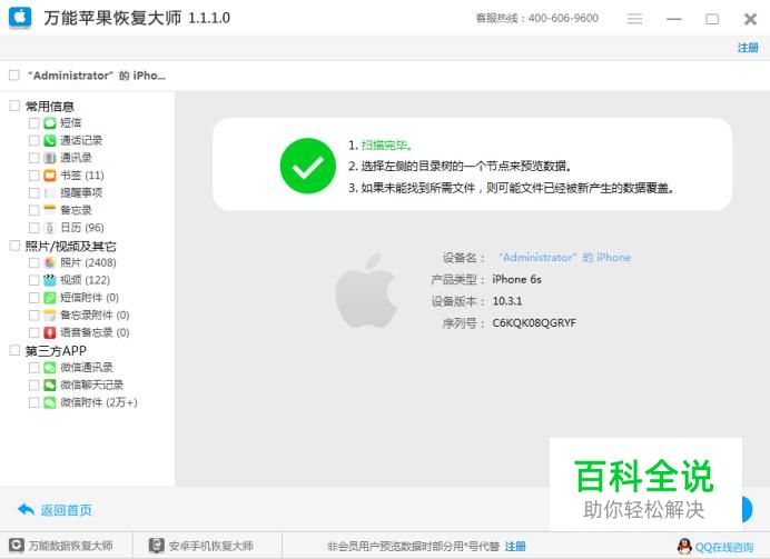 如果旧手机上的部分数据丢失,那么可以借助万能苹果恢复大师软件,扫描iTunes已经备份好的旧手机资料。