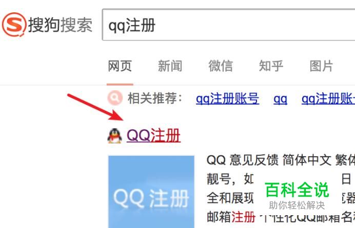 打开搜狗搜索,输入qq注册。然后点击打开官方网站。