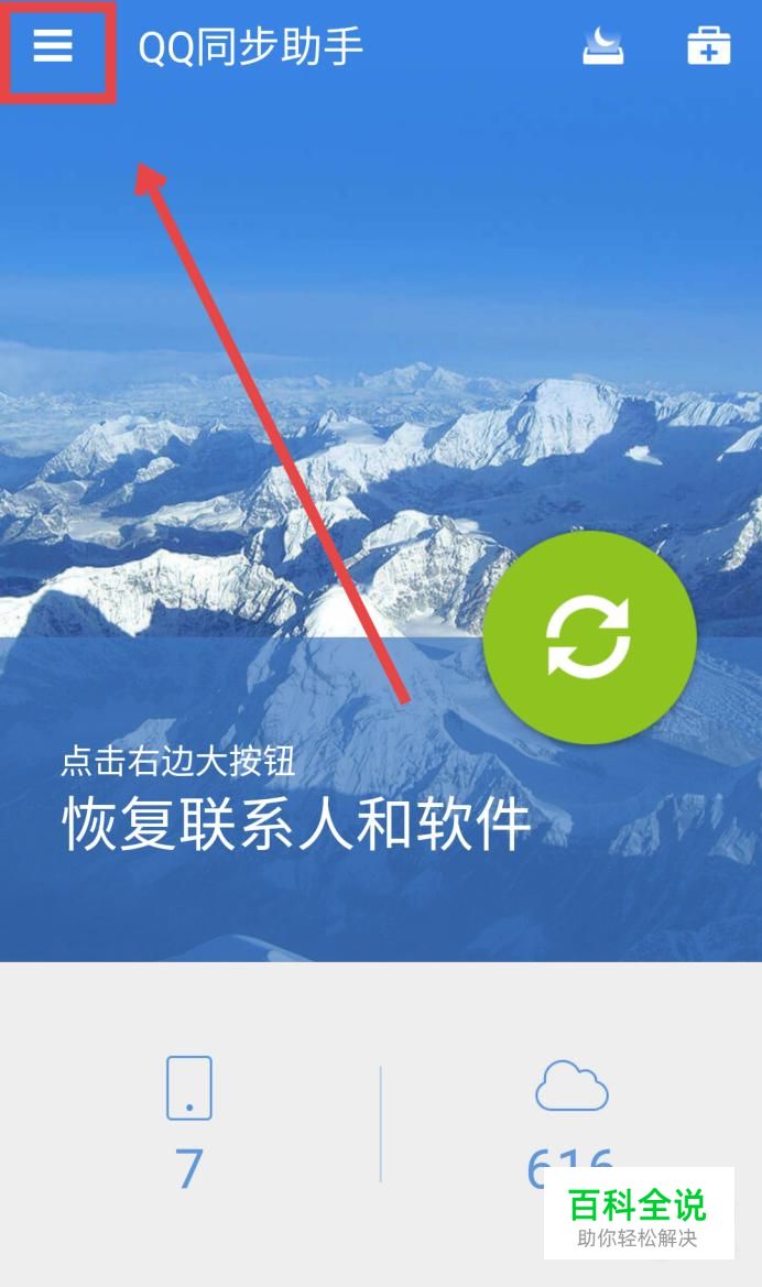 首先我们打开“QQ同步助手”,在左上角找到三条横线,点击进入。