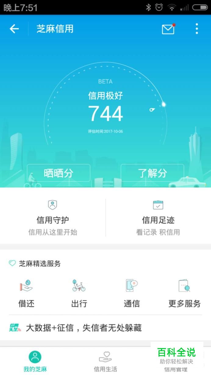 打开手机支付宝客户端,点击进入芝麻信用,点击进入信用管理。