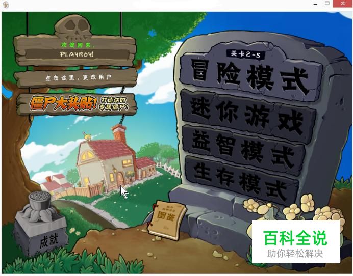 首先我们双击植物大战僵尸,然后选择冒险模式,点击2-5关卡开始战斗,如下图所示