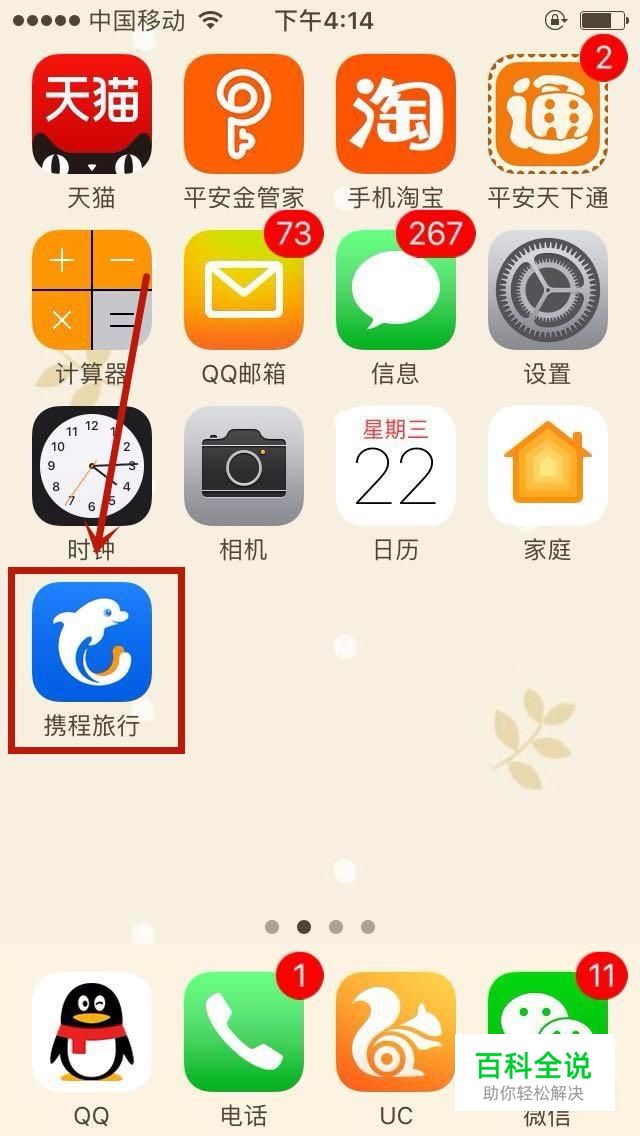 首先在手机桌面上找到“携程旅游”APP图标并点击它,如下图所示。