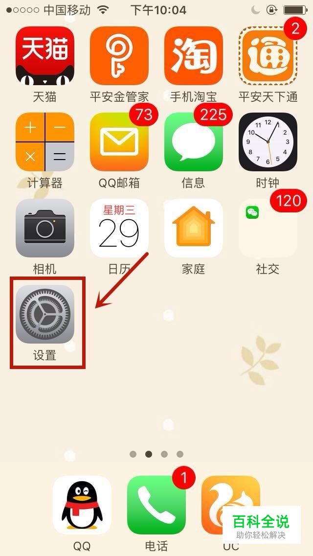 首先在手机桌面上找到“设置”并点击它,如下图所示。