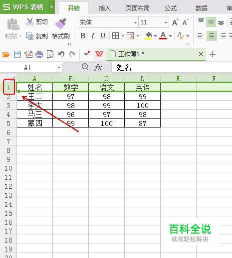 点击wps工作表左侧相应行的数字,将本行进行全选。