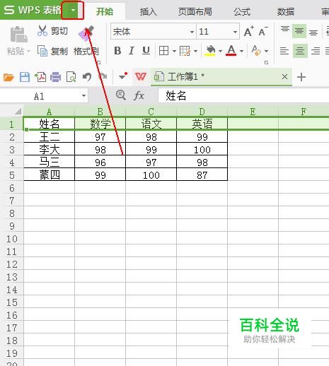 点击“wps表格”旁边的倒三角