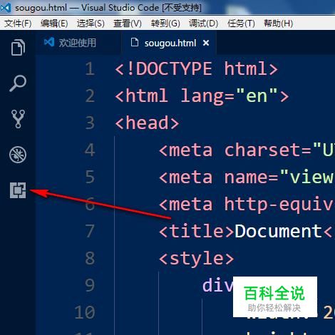 之后,我们点击vscode界面左边的扩展图标,如图所示,这个就是扩展图标。