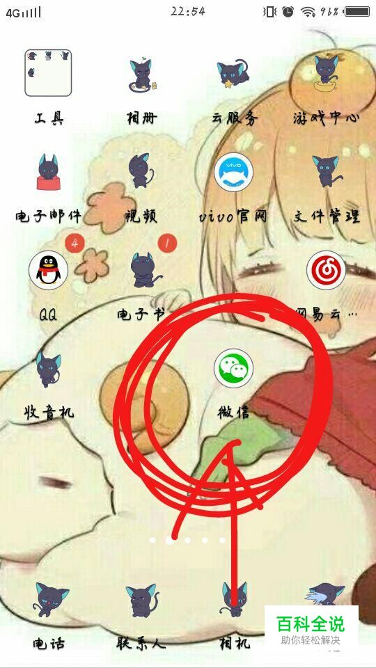 点击微信,进入其中,在页面右下角找到‘我’,点击进入。