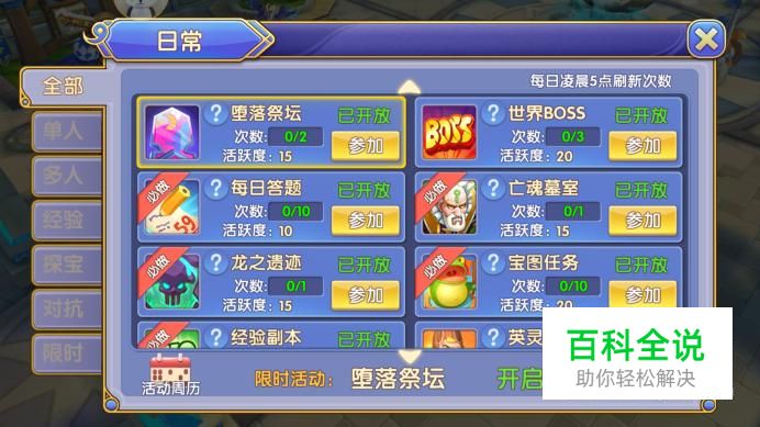 进入活动界面,在列表中点击“堕落祭坛”参加,每日可参与2次,可蝴蝶15点活跃度。