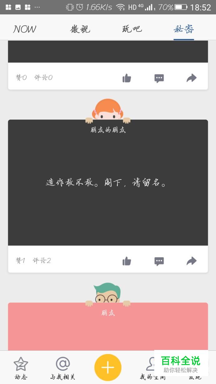 先进入手机里面的QQ空间APP,一定要进app,从qq里面进去的是看不到秘密的。