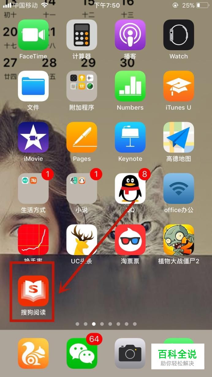 首先在手机桌面上找到“搜狗阅读”APP,并点击登入,如下图所示。