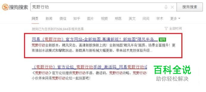 首先,使用搜索引擎搜索“荒野行动”关键字,在搜索结果页面中,点击进入荒野行动官网。