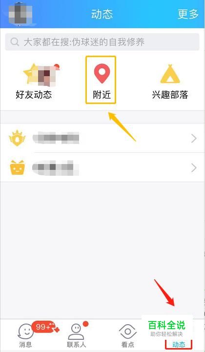 手机端QQ附近的人在什么地方呢?估计不少人会有此疑问,如下图所示,我们打开手机QQ以后,点击右下角的"动态",然后即可在页面上方看到"附件"选项了,如图...